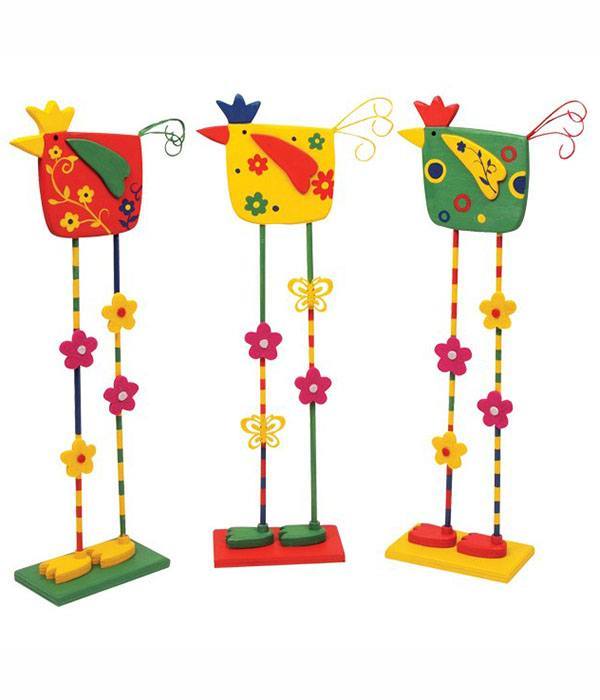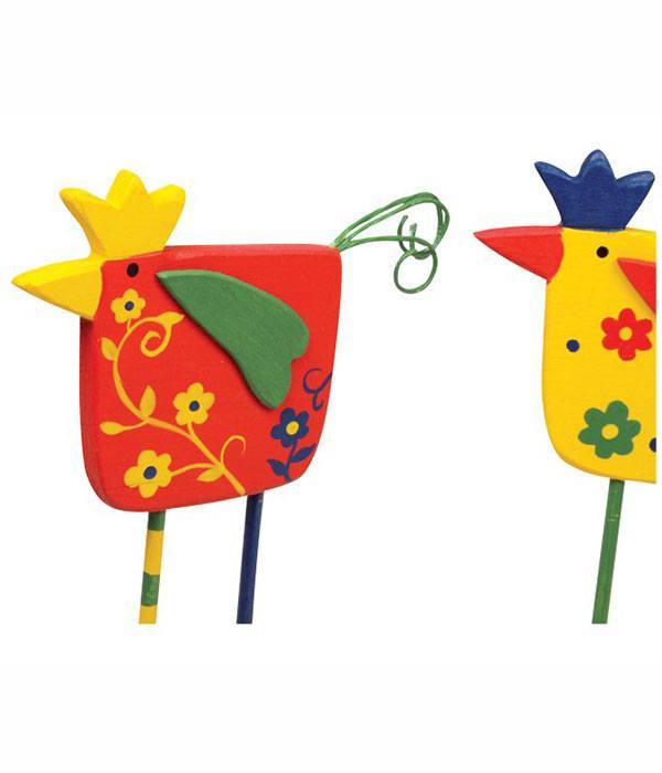 Finns matchande färgglada fåglar att hänga upp på väggen eller i fönstret.