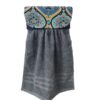 Snygg och annorlunda spishandduk med ett härligt tyg med rosa och gula rosor på en mörkare rosa botten. Med tryckknapp i plast för enkel fästning runt spishandtaget. Själva frottéhandduken är pistagegrön.